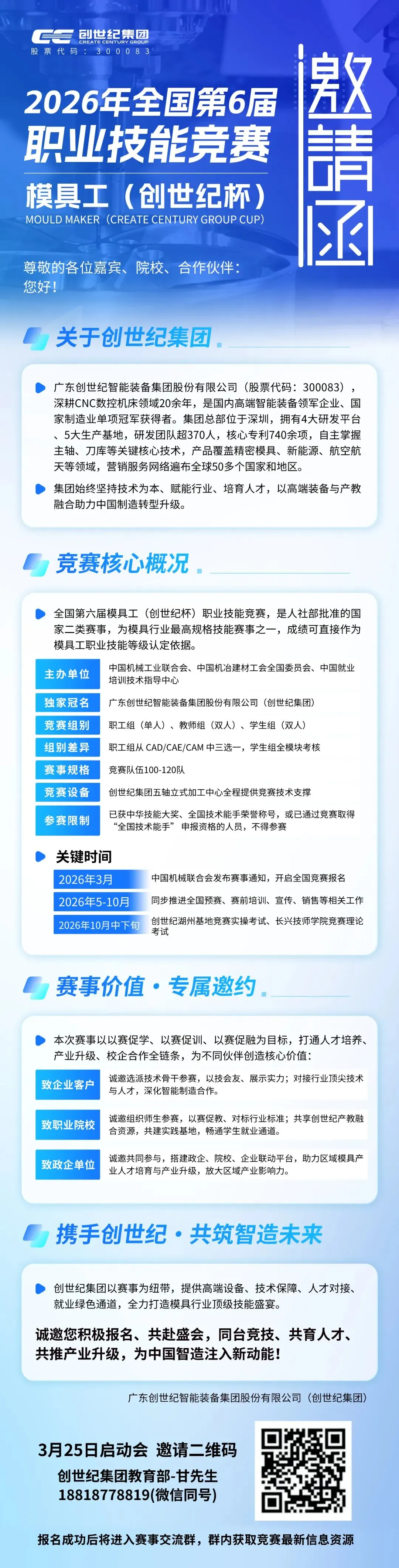 创世纪杯2026年全国第6届模具工职业技能竞赛火热开赛,诚邀您参加!