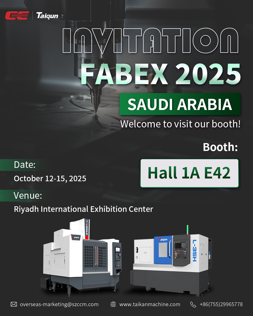 金秋十月,机遇涌动。创世纪Taiqun将携手最新技术与产品,重磅亮相2025年沙特金属加工展览会(FABEX 2025),与全球行业精英共聚沙特利雅得,探索金属加工领域的无限可能!